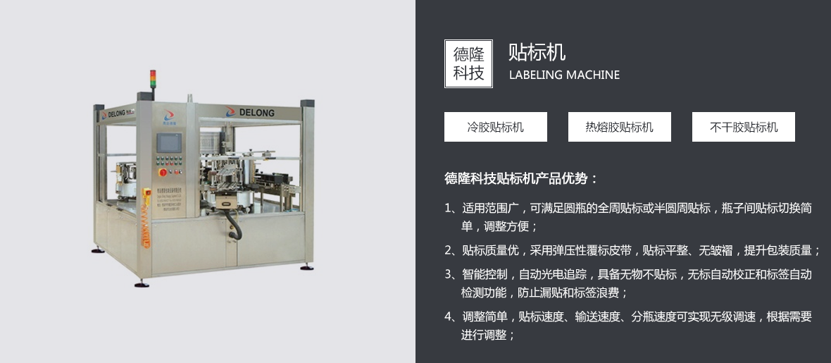 青島德隆自1995年創(chuàng)建以來(lái),始終秉承創(chuàng)新與發(fā)展的優(yōu)良傳統(tǒng),依靠技術(shù)與服務(wù)贏得客戶(hù)的信賴(lài)與尊重。在貼標(biāo)機(jī)向?qū)W⒒⒍嘈袠I(yè)領(lǐng)域發(fā)展并成就了中國(guó)異型瓶貼標(biāo)市場(chǎng)的經(jīng)典之后,應(yīng)市場(chǎng)不斷變化的客戶(hù)需求,優(yōu)化產(chǎn)品結(jié)構(gòu),引進(jìn)吸收國(guó)內(nèi)外的流體包裝設(shè)備理念,在貼標(biāo)機(jī)專(zhuān)業(yè)化地位穩(wěn)固的前提下,逐步實(shí)現(xiàn)關(guān)聯(lián)產(chǎn)品的多元化。   目前,青島德隆已經(jīng)成為國(guó)內(nèi)能同時(shí)滿(mǎn)足圓瓶、方瓶、扁瓶、錐度瓶、球形瓶、定位瓶等瓶型的高、中、低速多功能冷(熱)膠貼標(biāo)領(lǐng)域的廠(chǎng)家。隨著碼/卸(瓶/罐)垛機(jī)、沖瓶機(jī)、灌裝擠(旋/壓)蓋機(jī)、全自動(dòng)紙箱包箱設(shè)備、排序機(jī)、機(jī)器人碼/卸垛設(shè)備、激光噴碼機(jī)的運(yùn)行成功,一個(gè)真正的流體包裝設(shè)備方案解決專(zhuān)家已經(jīng)成熟。   青島德隆集團(tuán)的···......[查看詳情]
